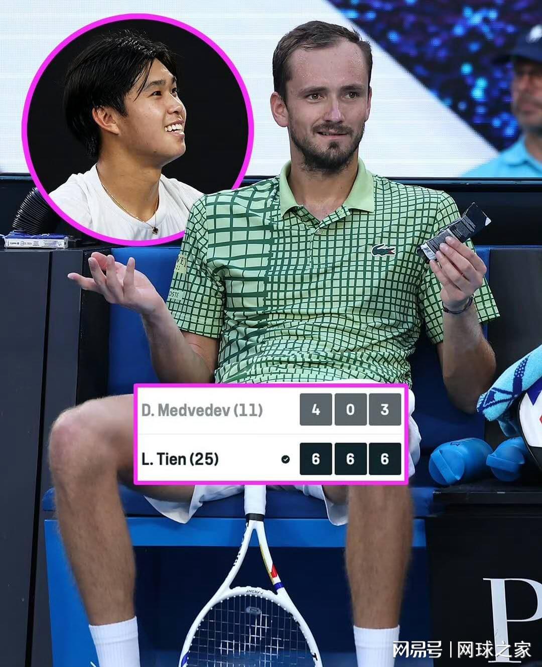 ESPN专栏作家在分析中写道:“梅德韦杰夫赛后坦言,勒纳·钱是‘除了阿卡和辛纳之外最难对付的对手’。但经过此役,这个评价或许需要更新了。钱正在用一场近乎碾压式的胜利证明——他可能已独自跻身‘梅总最难应付名单’的榜首。”