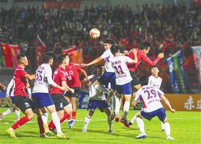 15日晚,海口队坐镇主场海南体育职业技术学院足球场,迎战本届比赛的最大“黑马”昌江队。比赛中,昌江队先进一球,海口队顶住压力扳回一球,并将1∶1的比分保持到90分钟结束。在随后进行的点球大战中,海口队守门员杨宁表现神勇,扑出了昌江队的两粒点球,帮助球队最终以总比分5∶4赢下比赛。