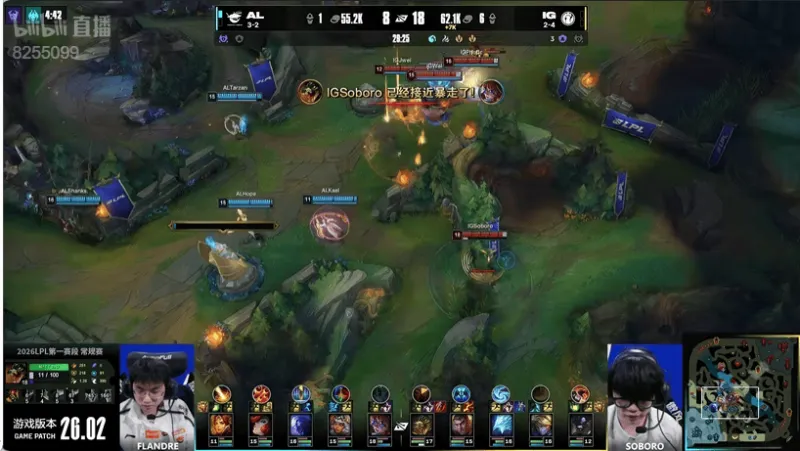 18分钟:IG野辅卡视野抓死蹲草的圣枪哥阿萝拉